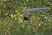 灰喜鹊:属雀形目、鸦科的中型鸟类。外形酷似喜鹊,但稍小。体长33-40厘米。嘴、脚黑色,额至后颈黑色,背灰色,两翅和尾灰蓝色,初级飞羽外翈端部白色。尾长、呈凸状具白色端斑,下体灰白色。外侧尾羽较短不…全部>>