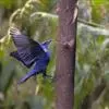 蓝大翅鸲是鹟科、大翅鸲属小型鸟类,体长19-21厘米。两翅尖长。雄鸟通体鲜紫蓝色具金属光泽。两翅和尾黑色。雌鸟上体灰褐色,头、颈、翕具棕白色纵纹,翅上有白色翅斑。虹膜暗褐色,嘴、脚黑色。…全部>>