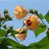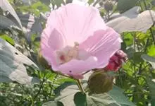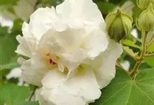 木芙蓉,锦葵科木槿属落叶灌木或小乔木。小枝上有细绒毛;叶片为卵状心形,托叶为披针形,常早落;花单生,花萼为钟形,花冠初为白色或淡红色,后逐渐变为深红色;果实为扁球形,有淡黄色的毛附着。花期8到10月。…全部>>