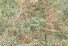 火棘 H. L. Li)是蔷薇科火棘属常绿灌木,老枝呈暗褐色;叶片呈倒卵形,边缘有钝锯齿,齿尖向内弯,两面皆无毛;叶柄短,无毛或嫩时有柔毛;花序是复伞房状,花瓣呈白色近圆形;果球近圆形,…全部>>