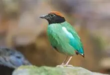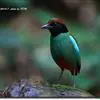 绿胸八色鸫:是雀形目八色鸫科的鸟类,共有12个亚种。体长为16-18厘米,体重65-69克。体型圆胖,尾短,腿长。头黑,上体绿色,两翼深色而具白色斑纹,头顶至后枕深褐,胸及腹部苹果绿,臀亮红。…全部>>