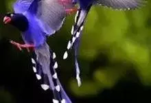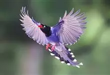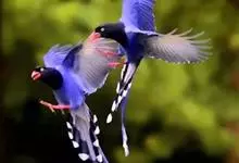 台湾蓝鹊:体长64至65厘米,翼展18至21厘米,尾长约40厘米,尾羽长占了总体长的三分之二。头、脸、颈、喉、胸都是黑色,黄色的眼珠包围黑色的瞳孔,鲜红色的鸟喙、双脚,…全部>>