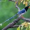 红嘴蓝鹊,别名山鹊、长尾鹊,是鸦科蓝鹊属的一种观赏性较强的大型鸣禽。该物种为体长54~65cm,头、颈、喉和胸黑色,头顶至后颈有一块白色至淡蓝白色或紫灰色块斑,其余上体紫蓝灰色或淡蓝灰褐色。尾长呈凸状,…全部>>