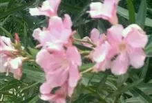 夹竹桃,又名红花夹竹桃、欧洲夹竹桃,是夹竹桃科夹竹桃属的一种常绿直立大灌木,枝条灰绿色,含水液。叶披针形,3叶轮生。聚伞花序顶生,花冠粉红至深红色,花冠漏斗状,有特殊香味。蓇葖果,圆柱形。种子长圆形,…全部>>