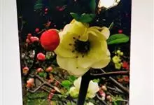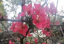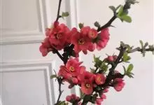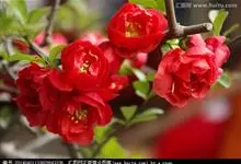 贴梗海棠Nakai)是蔷薇科、木瓜海棠属植物。落叶灌木,高达2米,枝条直立开展,有刺。叶片卵形至椭圆形,稀长椭圆形,长3-9厘米,宽1.5-5厘米。花先叶开放,3-5朵簇生于二年生老枝上。…全部>>