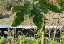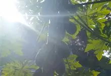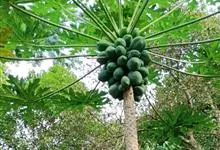 番木瓜,番木瓜科番木瓜属的常绿软木质小乔木,高达10米,具有乳汁;茎不分枝或有时于损伤处分枝;叶大且聚生于茎顶,近似盾形,叶柄中空;花单性或两性,有些品种雄株偶尔生两性花或雌花,…全部>>