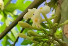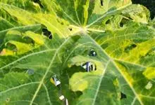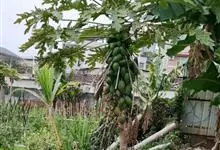 番木瓜,番木瓜科番木瓜属的常绿软木质小乔木,高达10米,具有乳汁;茎不分枝或有时于损伤处分枝;叶大且聚生于茎顶,近似盾形,叶柄中空;花单性或两性,有些品种雄株偶尔生两性花或雌花,…全部>>