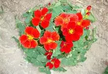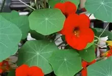 旱金莲是旱金莲科旱金莲属蔓生一年生草本植物。叶互生,叶柄向上扭曲,盾状,叶圆形,具波状浅缺刻,下面疏被毛或有乳点;花黄、紫、桔红或杂色,花托杯状,花瓣为圆形,边缘具缺刻;果实为扁球形;花果期6-10月,…全部>>