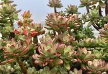 芙蓉雪莲是景天科拟石莲花属的植物。由于叶片表面覆盖着一层厚霜粉,通常呈现出白色;日照增多,温差增大后叶缘、叶尖会呈现出粉红色或橙红色。…全部>>