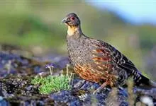 四川雉鹑体长为29-50厘米,与雉鹑非常相似,皮黄色,喉裸皮猩红色。繁殖期间主要栖息于海拔3500-4500米左右的针叶林、高山杜鹃灌丛和林线以上的岩石苔原地带,…全部>>