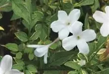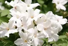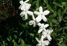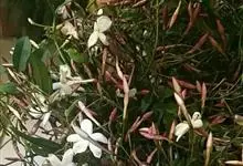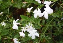 素馨花,木犀科素馨属多年生的攀援灌木植物。攀援灌木,小枝圆柱形,具棱或沟;叶对生,叶轴常具窄翼,小叶片卵形或长卵形;聚伞花序顶生或腋生,花序梗长,苞片线形,花萼无毛,裂片锥状线形,花冠白色,…全部>>