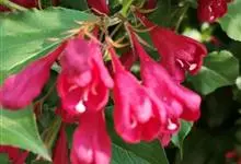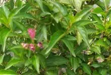 红王子锦带花是忍冬科锦带花属的落叶开张性灌木。株高1 -2米;嫩枝淡红色,老枝灰褐色;单叶对生,呈椭圆形,先端渐尖,叶缘有锯齿,红枝及叶脉具柔毛;花冠漏斗状钟形,花冠筒中部以下变细,聚伞花序,…全部>>