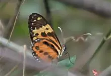 虎斑蝶,Danaus genutia ,是斑蝶属的一种,常见于湿地公园内。雄性虎斑蝶经常伏于吊裙草 上吸食汁液,以制造吸引异性的香气。虎斑蝶翅膀腹面鲜橙色,翅脉和翅边缘黑色,边缘上有两行小白点,…全部>>