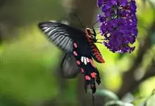 红纹凤蝶 ,Pachliopta aristolochiae,鳞翅目,凤蝶科,珠凤蝶属的一种蝴蝶展翅宽70~90mm。下翅黑色,具白色与桃红色斑纹,主要特征是下翅中央有4块白色斑纹组合成1块大型白斑…全部>>