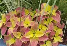 五彩苏 Benth.),是唇形科鞘蕊花属草本植物。五彩苏的茎通常紫色,四棱形,具分枝;叶膜质,通常卵圆形,边缘具圆齿状锯齿或圆齿,色泽多样,有黄、暗红、紫色及绿色;叶柄伸长,…全部>>