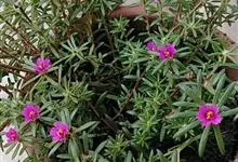 大花马齿苋:一年生草本,高10-30厘米。茎平卧或斜升,紫红色,多分枝,节上丛生毛。叶密集枝端,较下的叶不规则互生,叶片细圆柱形,无毛。花单生或数朵簇生枝端,直径2.5-4厘米,…全部>>