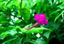 紫茉莉,别名晚饭花、晚晚花、野丁香、苦丁香等,为紫茉莉科紫茉莉属的一年生草本植物。其根肥粗,倒圆锥形,黑色或黑褐色;茎直立,圆柱形;叶片卵形或卵状三角形;花常数朵簇生枝端;总苞钟形,…全部>>