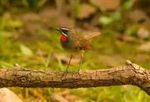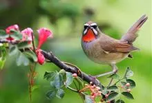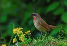 红点颏:是鸟纲、鹟科的鸣禽。又名西伯利亚歌鸲。体长14-17厘米,体重16-27克。雄鸟头部、上体主要为橄榄褐色。眉纹白色。颏部、喉部红色,周围有黑色狭纹。胸部灰色,腹部白色。雌鸟颏部、喉部不呈赤红色,…全部>>