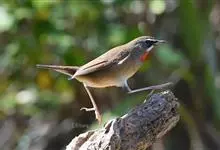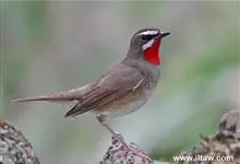 红点颏:是鸟纲、鹟科的鸣禽。又名西伯利亚歌鸲。体长14-17厘米,体重16-27克。雄鸟头部、上体主要为橄榄褐色。眉纹白色。颏部、喉部红色,周围有黑色狭纹。胸部灰色,腹部白色。雌鸟颏部、喉部不呈赤红色,…全部>>