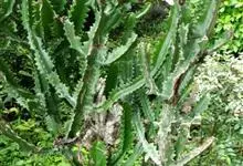 霸王鞭,是大戟科大戟属的多年生肉质灌木,全株含白色乳汁;茎直立,茎基部圆柱形,上部4~5纵棱,边缘波状,外面深绿色;叶互生,上部叶密集,近于簇生,具短柄,其基部有利刺1对;叶片披针形,先端圆,…全部>>