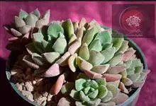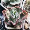 女王花笠,又名扇贝石莲花、女王花舞笠,是景天科拟石莲花属的多肉植物。由美国加利福尼亚州的育种师Dick Wright于1964年培育。特征是呈大波浪状褶皱的红色叶缘和气质高贵的粉紫色调。…全部>>