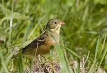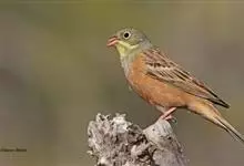 圃鹀:体重20-25克,体长150-175毫米,属小型鸣禽。喙为圆锥形,与雀科的鸟类相比较为细弱,上下喙边缘不紧密切合而微向内弯,因而切合线中略有缝隙;体羽似麻雀,头上、后颈及胸橄榄绿色,翕呈栗褐色…全部>>