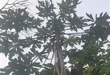 十字架树是紫葳科、葫芦树属小灌木,高3-6米。叶簇生于小枝上;小叶长倒披针形至倒匙形,几无柄,叶柄具阔翅。花1-2朵生于小枝或老茎上;花梗长约1厘米。花萼淡紫色。花冠褐色,具有紫褐色脉纹,近钟状,具…全部>>