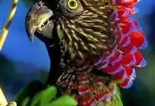 鹰头鹦鹉:鹰头鹦鹉体长35厘米,体重190-277克。额头和顶冠具柔和的白色,眼先深褐色,枕部和头部两侧有棕色羽毛,并具有柔软的白色条纹, 后颈有长长的暗红色羽毛并镶有蓝边,有2个亚种,是典型的攀禽,…全部>>