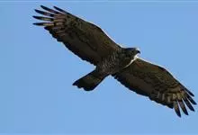 林雕:为隼形目鹰科的鸟类,是一种中型猛禽,体长67-81厘米,翼展164-178厘米,体重1000-1600克。通体黑褐色,眼下及眼先具白斑;头、翼及尾色较深;尾较长,…全部>>
