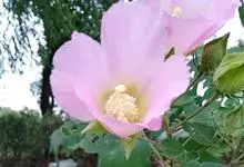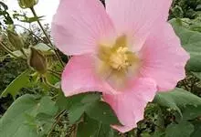 木芙蓉,锦葵科木槿属落叶灌木或小乔木。小枝上有细绒毛;叶片为卵状心形,托叶为披针形,常早落;花单生,花萼为钟形,花冠初为白色或淡红色,后逐渐变为深红色;果实为扁球形,有淡黄色的毛附着。花期8到10月。…全部>>