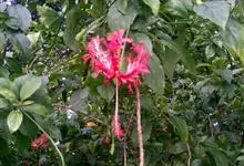 吊灯扶桑 Hook. f.)为锦葵科木槿属的常绿灌木。高达3米;小枝常下垂;叶椭圆形或长圆形,先端尖或短渐尖,基部楔形;花梗细,无毛或具纤毛,中部具节;蒴果长圆柱形;花期全年。因似灯笼高挂,…全部>>