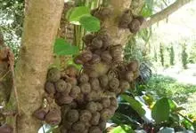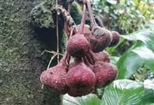 大果榕是桑科榕属的小乔木,株高可达10米;幼枝被柔毛;叶互生,宽卵状心形或近圆形;雄花无梗、匙形、花丝长,雌花生于雌株榕果内,子房白色;榕果簇生于树干基部或老茎短枝上、扁球形或陀螺形,…全部>>