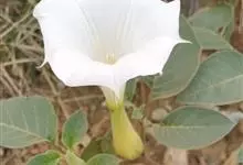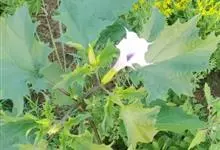 洋金花是茄科曼陀罗属植物,一年生草本植物,全株近于无毛。茎直立,圆柱形,高30~100cm,基部木质化,上部呈义状分枝。叶互生,上部的叶近于对生;叶柄长2~6cm,表面被疏短毛;叶片卵形、长卵形或心形,…全部>>