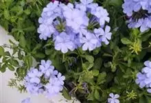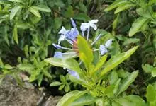 蓝花丹是白花丹科、白花丹属的常绿亚灌木。高约1米;叶薄,呈菱状卵形至狭长卵形;穗状总状花序,总花梗短,花冠淡蓝色至蓝白色,呈倒卵形,苞片呈线状狭长卵形,小苞呈狭卵形或长卵形,…全部>>
