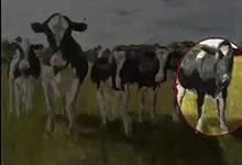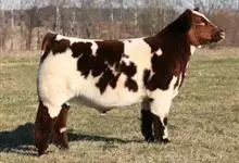 西门塔尔牛是偶蹄目牛科牛属哺乳动物。 体躯长,呈圆筒状,肌肉丰满;头较长,面宽,颈长中等,角较细而向外上方弯曲,尖端稍向上;前躯较后躯发育好,胸深,尻宽平,四肢结实,大腿肌肉发达,乳房发育好。…全部>>
