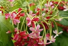 使君子 Jongkind)是使君子科、使君子属攀援灌木,叶对生,椭圆形,两面均被灰白色柔毛。穗状花序,倒挂下垂。花期夏秋。果有五棱,熟时黑色,种子白色。分布于印度、缅甸、菲律宾和中国。喜温润,深根性,…全部>>