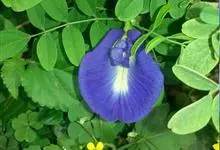 蝶豆是豆科蝶豆属植物。攀援状草质藤本。茎、小枝细弱,被脱落性贴伏短柔毛。叶长2.5-5厘米;托叶小,线形,长2-5毫米;叶柄长1.5-3厘米。花大,单朵腋生;苞片2,披针形。荚果长5-11厘米,…全部>>