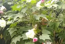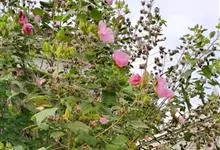 木芙蓉,锦葵科木槿属落叶灌木或小乔木。小枝上有细绒毛;叶片为卵状心形,托叶为披针形,常早落;花单生,花萼为钟形,花冠初为白色或淡红色,后逐渐变为深红色;果实为扁球形,有淡黄色的毛附着。花期8到10月。…全部>>