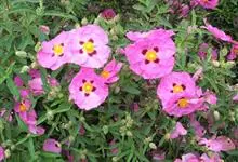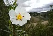 岩蔷薇是半日花科岩蔷薇属植物,多年生直立亚灌木,高约1.5-2.5米,全体具胶黏腺体。枝条褐色,侧枝分为生长枝和结果枝。单叶对生,披针形至线状披针形,长5-8厘米,宽0.5-1.5厘米。…全部>>