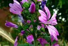 锦葵:二年生或多年生直立草本,高50-90厘米,分枝多,疏被粗毛。叶圆心形或肾形,具5-7圆齿状钝裂片,两面均无毛或仅脉上疏被短糙伏毛。花3-11朵簇生,小苞片3,长圆形疏被柔毛;花紫红色或白色,…全部>>