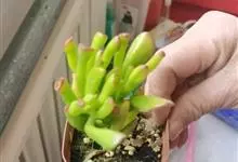 筒叶花月,是景天科青锁龙属的多年生草本植物。植株多分株,灌木状,茎较粗壮,圆柱形,表皮灰褐色;叶片肉质,互生,呈圆筒状,簇生于茎或分枝顶端,叶端呈斜截形,截面为椭圆形;花呈星状,淡白色;花期秋季。…全部>>