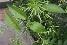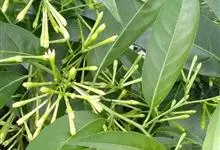 夜香树是茄科、夜香树属直立或近攀援状灌木。枝条细长而下垂。叶有短柄,叶片矩圆状卵形或矩圆状披针形,全缘,顶端渐尖,基部近圆形或宽楔形,两面秃净而发亮,有6-7对侧脉。伞房式聚伞花序,腋生或顶生,…全部>>