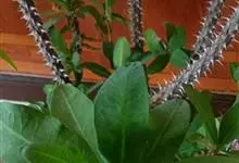 虎刺梅:别称铁海棠,是蔓生灌木植物。茎多分枝,长60-100厘米,直径5-10毫米,具纵棱,密生硬而尖的锥状刺,刺长1-1.5厘米,直径0.5-1.0 毫米,常呈3-5列排列于棱脊上,呈旋转。叶互生…全部>>