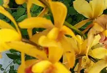 迎春花,木犀科素馨属的多年生木本植物,小枝细长直立或者呈拱形下垂;叶片呈卵形或椭圆形;花单生于叶腋处,苞片呈披针形或椭圆形,花冠为金黄色,花瓣通常为倒卵形或椭圆形;花期在6月。…全部>>