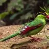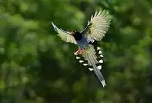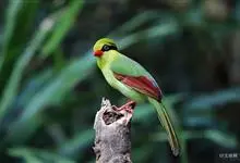 蓝绿鹊:中型鸟类,共有5个亚种。体长36-38厘米。尾长,嘴、脚红色。通体羽色主要为草绿色,宽阔的黑色贯眼纹向后延伸到后颈,在绿色的头侧极为醒目。两翅栗红色,内侧飞羽具黑色次端斑和白色尖端。尾绿色,…全部>>