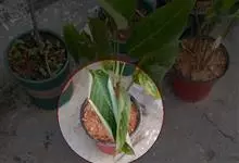 海芋 K. Koch),是天南星科海芋属的大型常绿草本植物;具匍匐根茎,有直立地上茎,基部生不定芽条;叶多数,亚革质,草绿色,箭状卵形,叶柄绿或污紫色,螺旋状排列,粗厚;花序梗圆柱形,绿色,有时污紫色,…全部>>