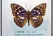 大紫蛱蝶为大型蝶种,翅展约86~110mm。翅紫黑色,有白色斑点点缀其中,雄蝶的翅具强烈紫色虹彩,其余部分暗褐色,后翅臀角具粉色斑。雌蝶体型较大,但是没有蓝紫金属光泽。原产于东亚的蝶类。…全部>>