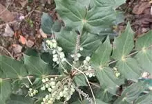阔叶十大功劳 Carr. )是小檗科,十大功劳属常绿灌木或小乔木,高可达2米。叶长圆形,上面深绿色,叶脉显著,背面淡黄绿色,网脉隆起,小叶无柄,基部一对小叶倒卵状长圆形,总状花序簇生,…全部>>