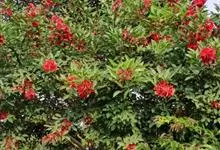 红千层是桃金娘科红千层属的常绿小乔木植物。红千层树皮坚硬,灰褐色,嫩枝有棱,初时有长丝毛,不久变无毛;叶片坚革质,线形;穗状花序生于枝顶,花瓣绿色,卵形,雄蕊鲜红色,花药暗紫色,…全部>>