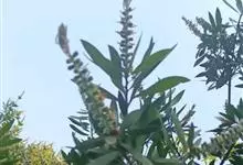 白千层 Barlow)是桃金娘科白千层属的乔木;树皮灰白色,厚而松软,呈薄层状剥落;嫩枝灰白色;叶互生,叶片革质,披针形或狭长圆形,两端尖多油腺点,香气浓郁;叶柄极短;花白色,密集于枝顶成穗状花序,…全部>>